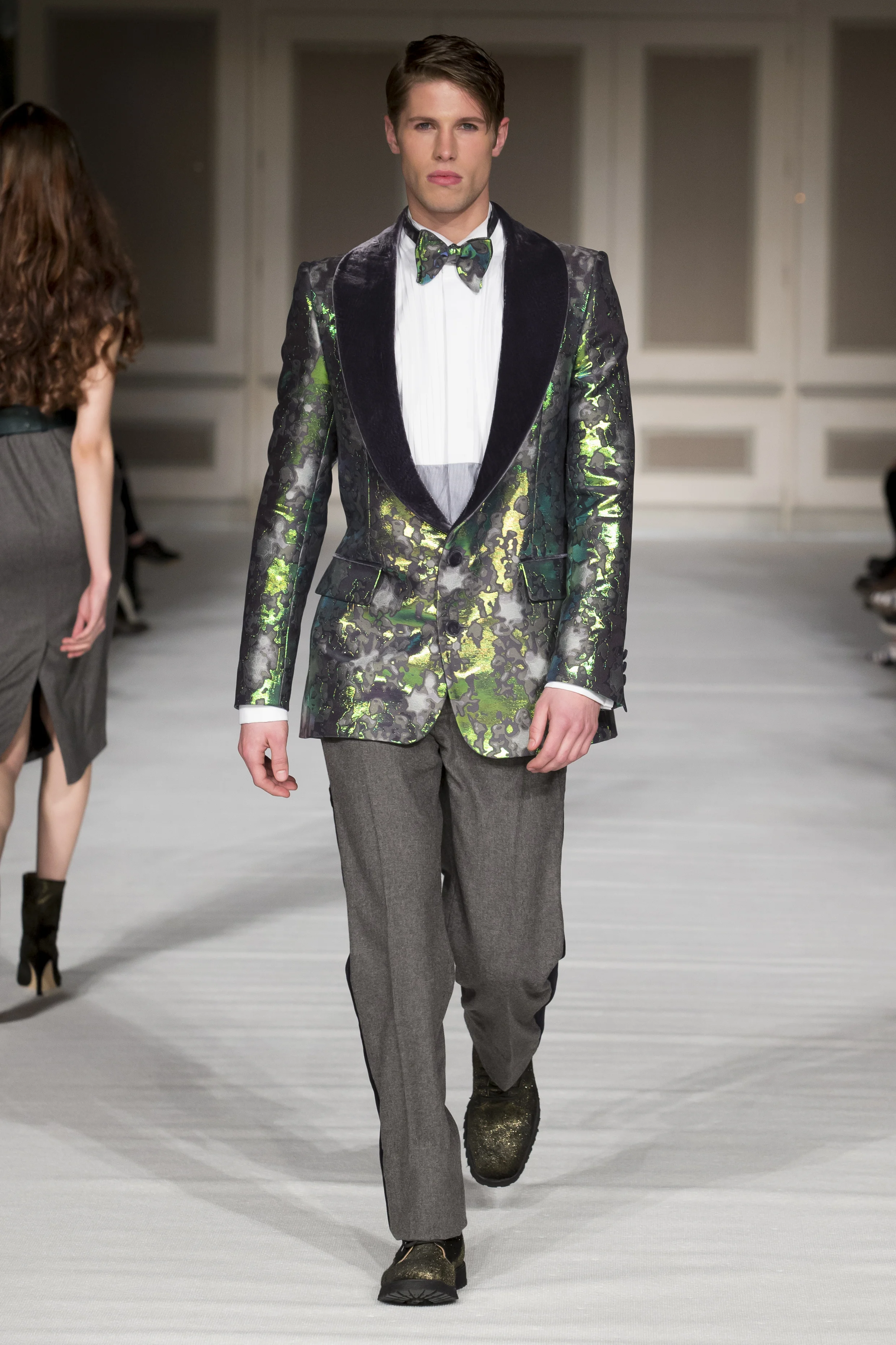 What stood out for me in the men's looks were the bold metallic fabrics, combined with classic velvet tailoring whilst contrasting by mixing and matching the suit jacket and trousers. Then the finer details Ong finished the looks off with an oversize papillon style bow tie in the same epic fabric and some unique hexagon cufflinks by Tresor Paris.