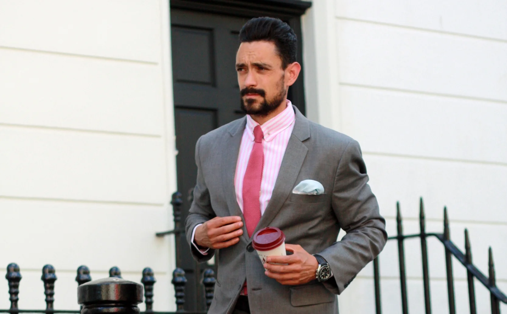 With summer around the corner it is now acceptable to start wearing lighter shades of suit and brighter coloured shirts. Although never go over the top, you should mix and match brights with pastels and different colour palettes. So in this look I have tried to highlight each of those points.