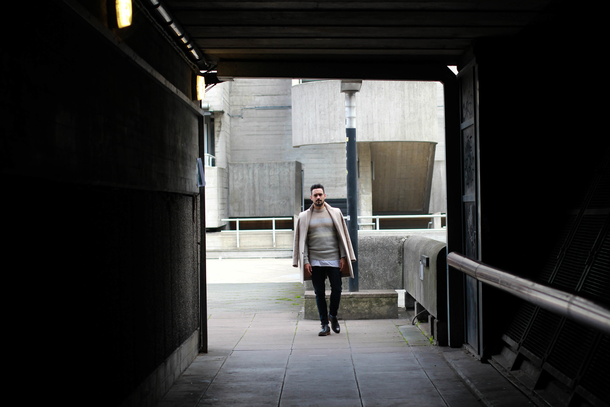One of my favourite looks this autumn/fall is combining neutrals and Reiss have the clothing to style this look perfectly. The look is centred around this neutral coloured over coat, which Reiss define as oatmeal, worn two ways in a traditional way or over the shoulders. Again from Reiss, I've worn this wool striped jumper and longline white tee underneath for comfort and to give extra layering. Finally I have gone for dark jeans to give to look some gradient transition paired with a pair of black brogues.