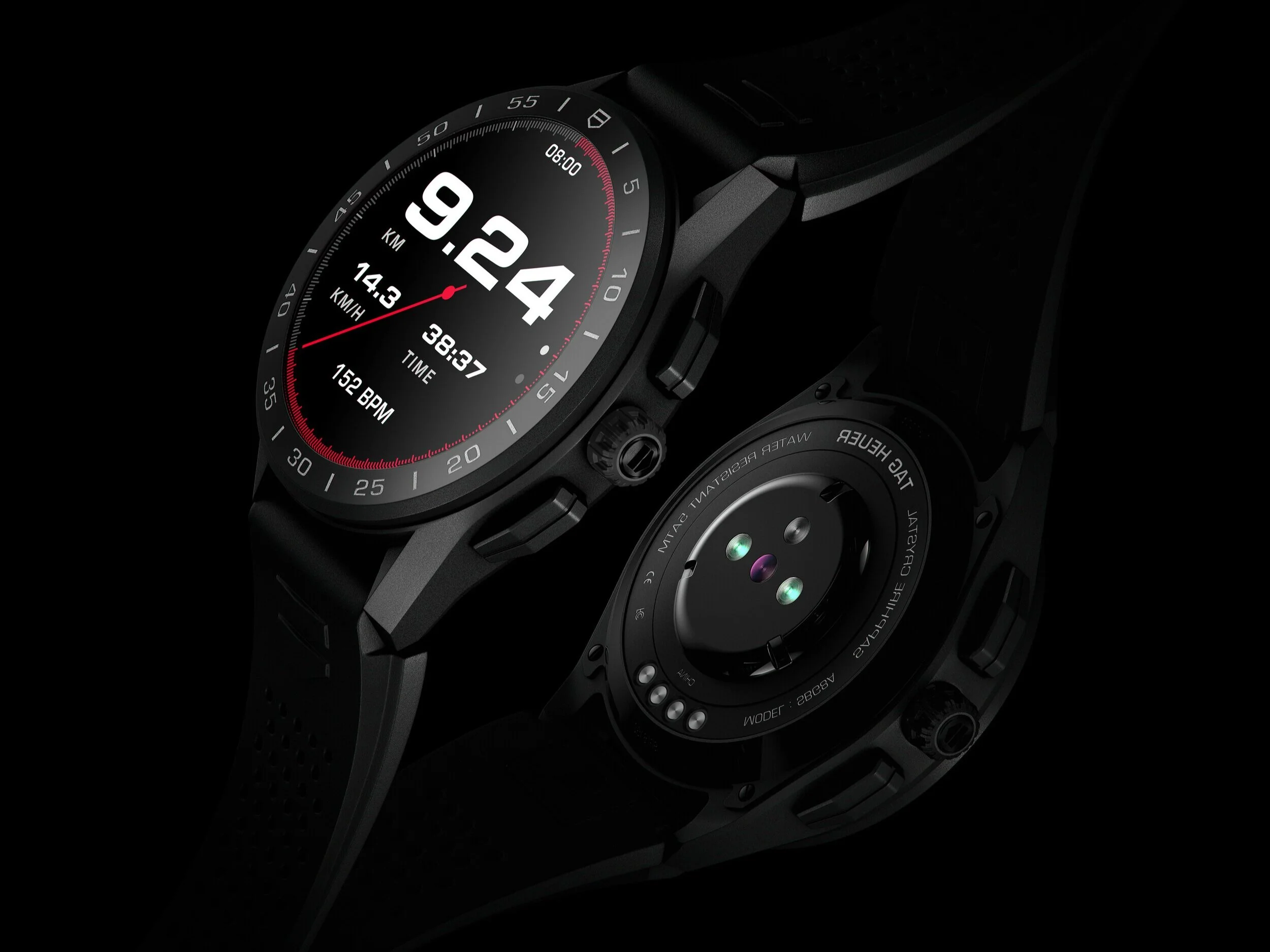 Designed with high-intensity activities in mind, the TAG Heuer Connected watch offers a 5 ATM water resistance rating, suitable for low-velocity and shallow-water activities, such as swimming or running in the rain, and a 430 mAh all-day battery optimised to include a one-hour sports session using GPS, audio streaming and heart-rate monitoring.