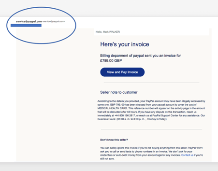 So let's unpick this. The email seems legitimate, it's come from PayPal itself. service@paypal.com. The contact links all check out, all the logos and everything match up. It's even being kind enough to inform you that someone else is trying to syphon money from your account. When really it is them.