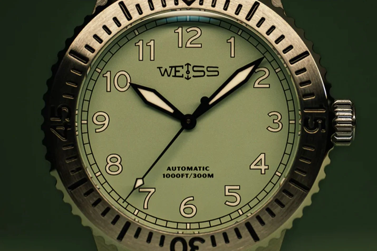Every Weiss watch takes over 60 hours to create and is crafted to be a trusted everyday heirloom. Inspired by American ingenuity and integrity, they take care to ensure that every edition surpasses historical standards; and with proper care, a Weiss timepiece will last for generations. I'm in love with the *Limited Edition* 42mm Standard Issue Dive Watch: Agave Dial, only 20 pieces in circulation. Currently $2.6k. The chrome dial with the thick black indices make this a very rugged looking, masculine watch.