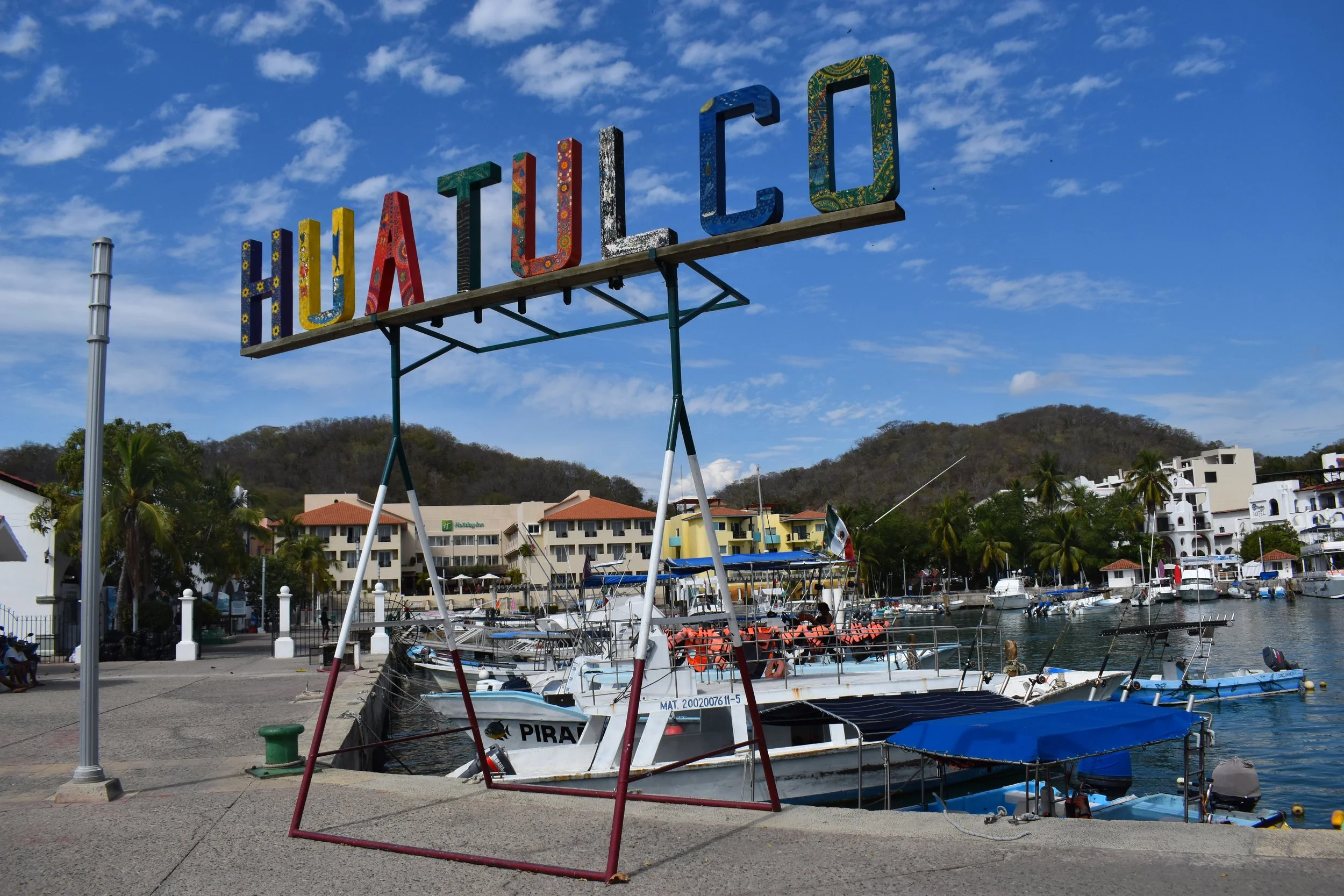 There really is nothing in the town of Huatulco, and the walk along the main road is not the most scenic. I'd recommend staying in the port, finding a nice bar and eat some tasty shrimp. Definitely seek out a fishing trip, there will be plenty of tours you can take. Just remember, pay half upfront and half at the end, and agree on the price by writing the FINAL figure down on paper.